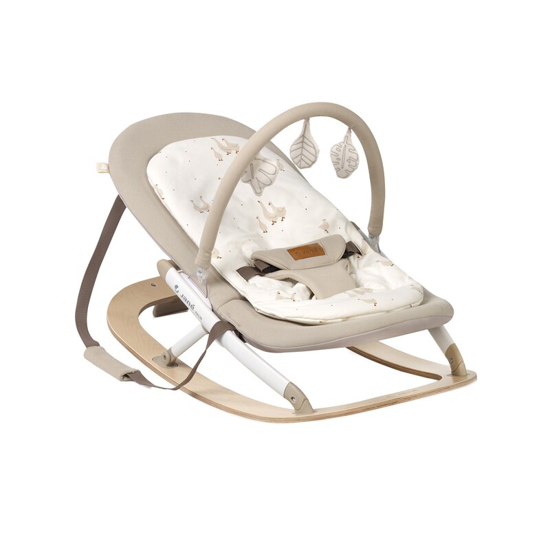 Balansoar, Jane, Kalm, Pliabil, Cu bara de jucarii si spatar reglabil, Cu baza din lemn, Desert