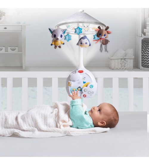 - 5-18 luni: Se transforma in cutie muzicala cu proiectii pe tavan pentru copii mai mari;