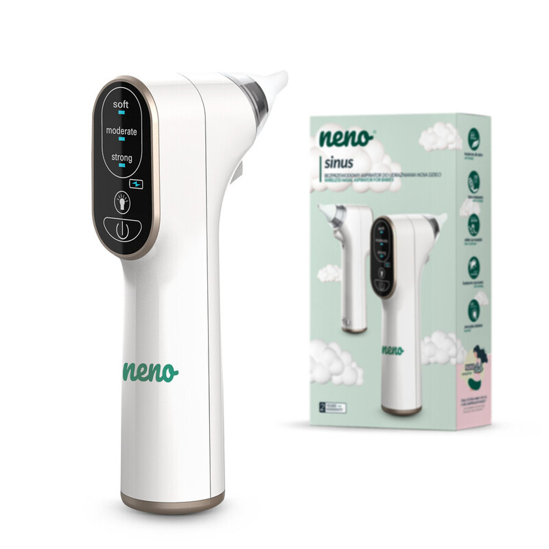 Neno Sinus este un dispozitiv conceput avand in vedere functionalitatea si confortul parintelui si al copilului. Aspiratorul este realizat din materiale de inalta calitate. Designul dispozitivului este estetic si il face simplu in utilizare. Butoanele mari, intuitive de pe panoul tactil sunt foarte usor de inteles. Aspiratorul este curbat la un unghi de 90 de grade pentru a preveni impingerea prea departe a dispozitivului in nasul copilului.