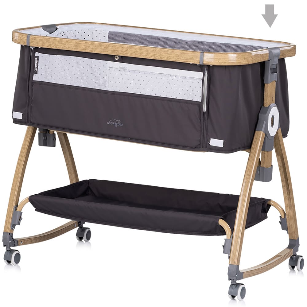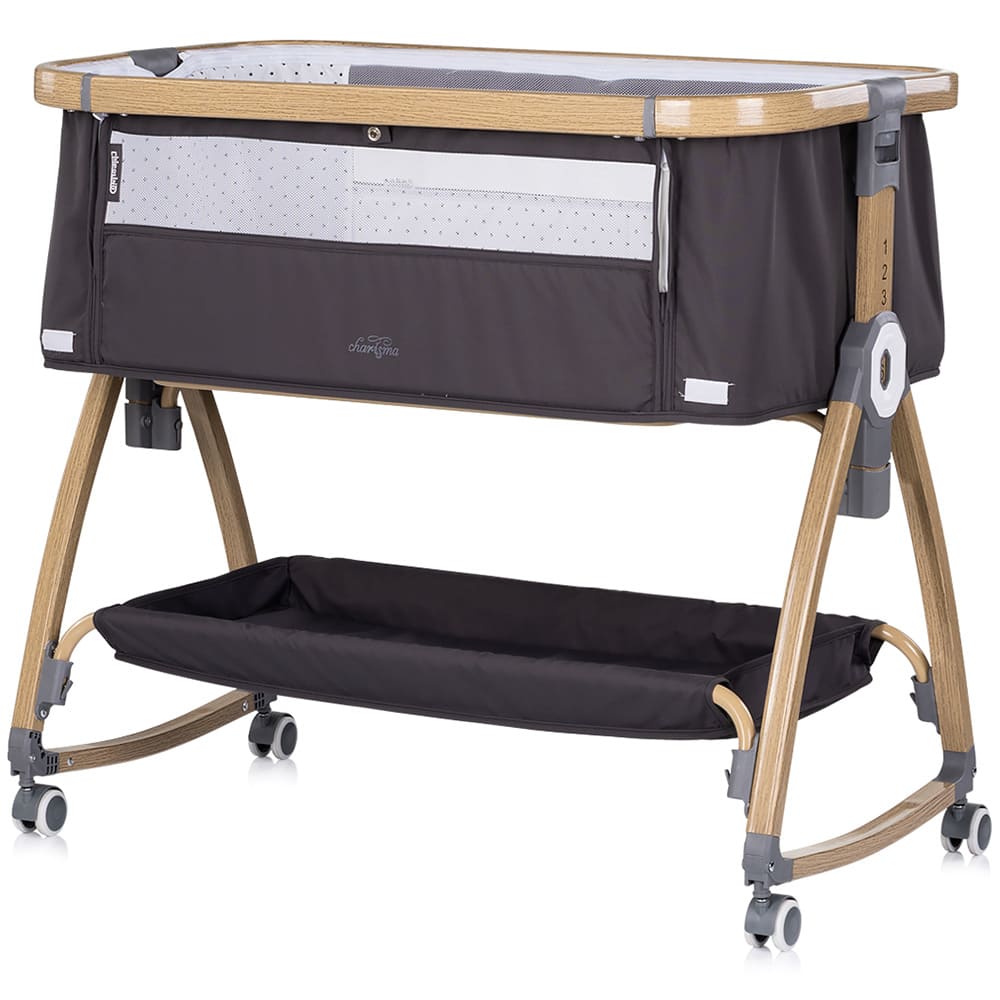 Patut co-sleeper Chipolino Charisma cu laterala culisanta charcoal wood