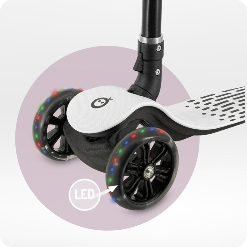 Rotile din poliuretan rezistent la abraziune ofera o deplasare lina si stabila, iar efectul luminos LED le face pe placul copiilor si asigura vizibilitate sporita.
